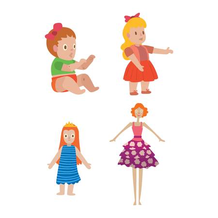かわいい女性の人形セット 小さな女の子の漫画ベクトルイラスト 漫画スタイルのための素敵なおもちゃ のイラスト素材 ベクタ Image